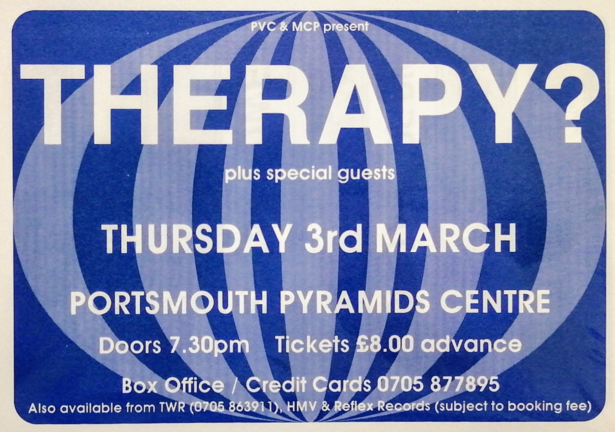 Pleasingy round gig history for today. Thirty years ago I was at Therapy? in Portsmouth. Got some good twenty-years-since gigs coming up this week.