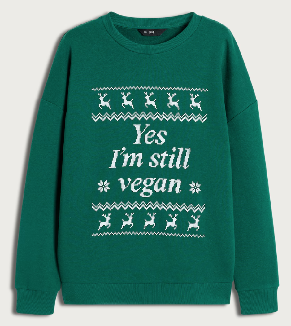 This christmas jumper is sold out in my size. Who is buying them all? Vegans famously do not like to go on about it...