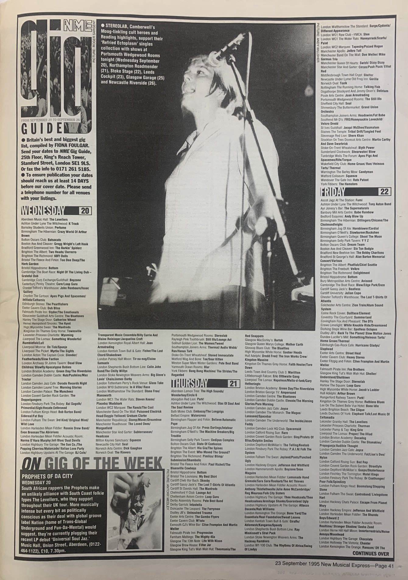 From an old NME gig guide.