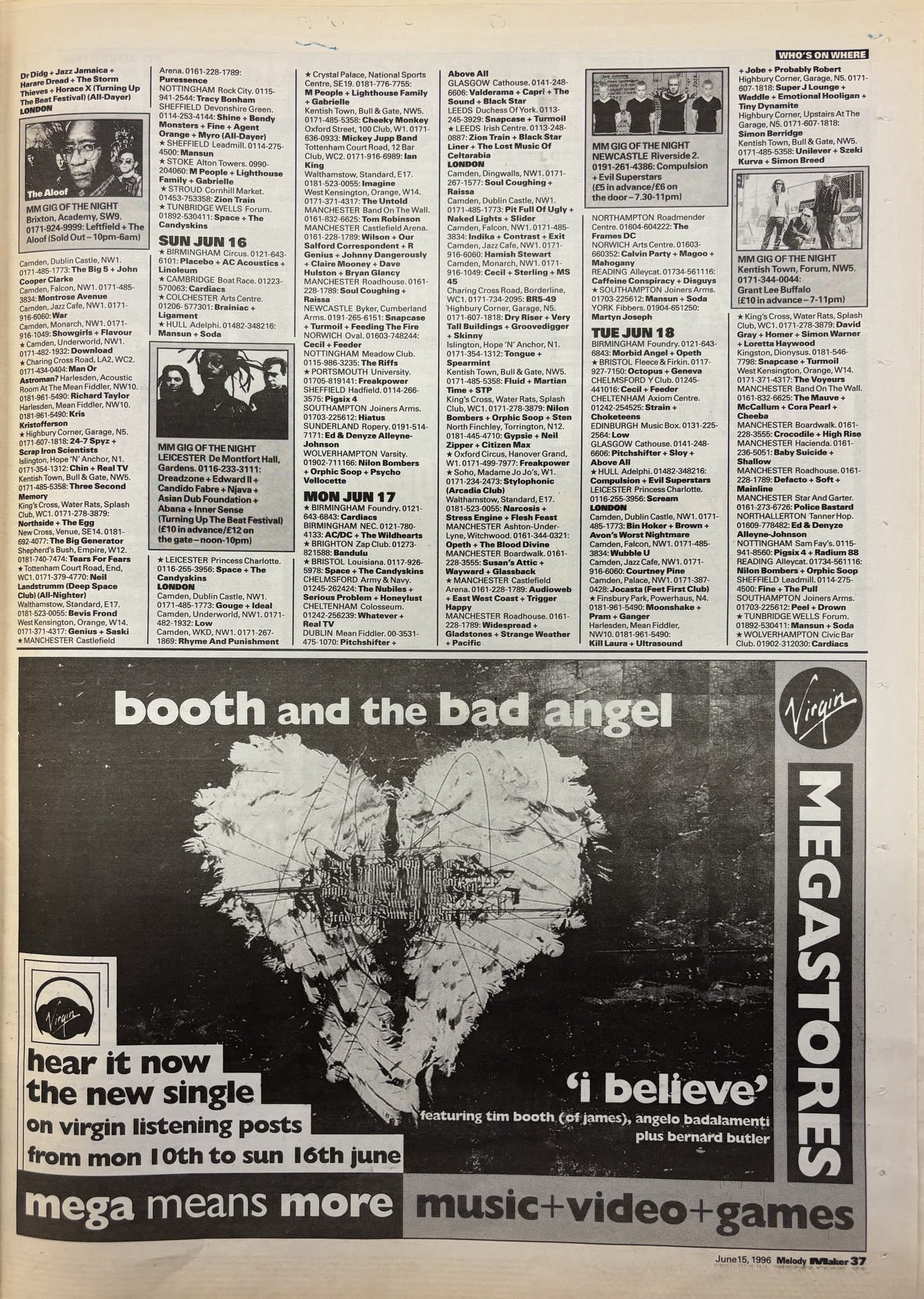 Other gigs at Southampton Joiners I have been to are David Devant and his Spirit Wife ('96), Heavy Stereo (1996), Tiger ('96), Cecil (1996), The Divine Comedy ('96), Tripping Daisy (1996), Babybird (1996), Christian Death ('96), Number One Cup (1996), Northern Uproar (1996), Catatonia (1996), Perfume (1996), Smaller ('95), Longpigs ('95), Fluffy ('95), Gouge (1995), Thurman ('95), Perfume ('95), Skunk Anansie ('95), We Know Where You Live (1995), Salad ('95), Sultans of Ping (1995), Sleeper ('95), Supergrass ('95), Shed Seven ('94), Wishplants (1994), and The Primitives (1991).