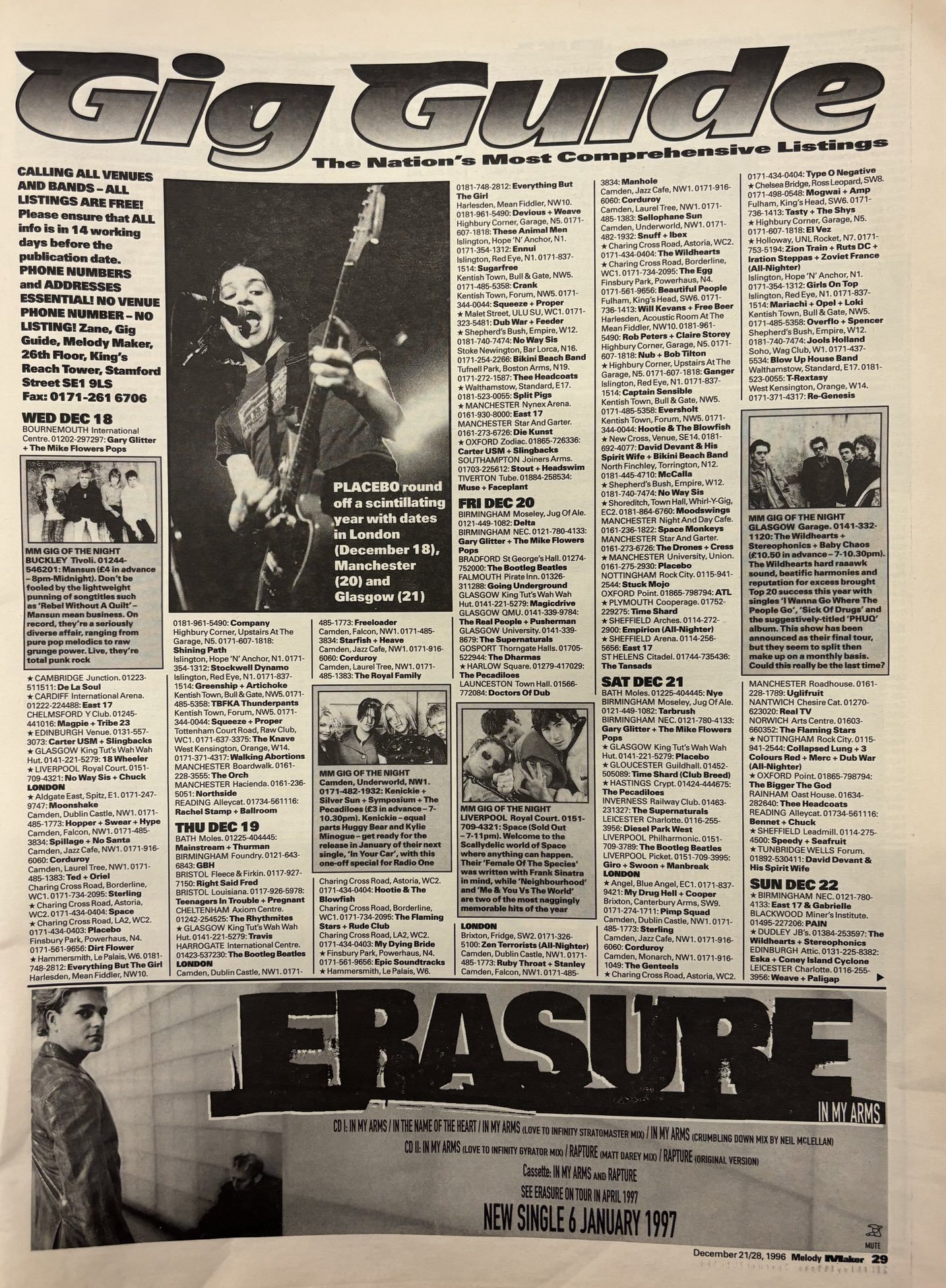 Plus Feeder. From an old Melody Maker gig guide.